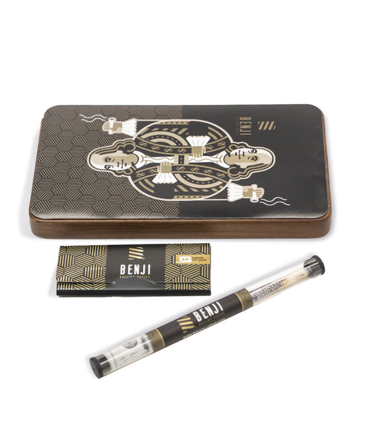 Benji OG Walnut Rolling Tray with Magnetic Lid, Papers, and Cones